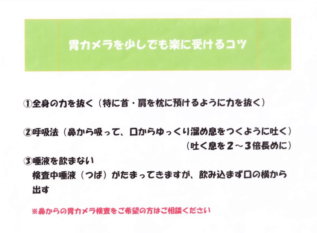 多くの医療現場では、「苦痛を最小限にしたい場合は経鼻」、「しっかり精密に診てほしい場合は経口+鎮静剤」という組み合わせが推奨されています。当日まで迷う場合は、事前に看護師へ相談し、自身の体質(鼻の通りや反射の強さ)を伝えるのがスムーズです。