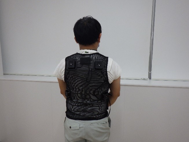 今年は、熱中症対策の一環として「ペルチェ素子」を使った冷却ベストを試験的に導入いただきました。ペルチェ素子とは、電気の力で表面を冷やす小型の半導体部品で、クーラーのような仕組みを衣類に組み込むことができます。