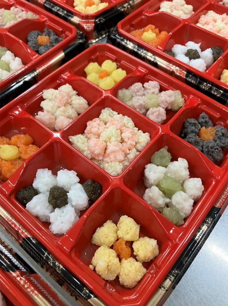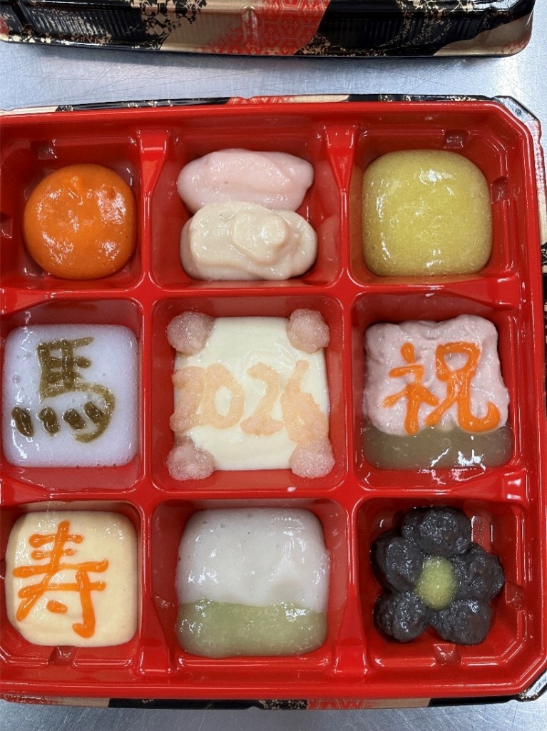 入院中の楽しみである食事を充実させるため、季節感ある献立や全国の郷土料理を使用した献立、行事食を毎月組み込んで提供しています。入院患者様、職員の食事満足度はかなり上昇しました。また、行事食の日にはカードも添え、楽しんでいただけるよう工夫しています。今年の元旦にはおせちが提供されました。